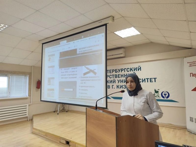 12 декабря в актовом зале филиала СПбГЭУ состоялась встреча студентов с врачом терапевтом Центральной городской поликлиники Саидовой Мадиной Шахмановной. Тема мероприятия — профилактика употребления никотиносодержащей продукции (НСП) среди молодёжи. Проблема употребления НСП остаётся одной из наиболее острых в современном обществе. Несмотря на ужесточение законодательства и активную просветительскую работу, подростки продолжают пробовать никотиновые изделия — от традиционных сигарет до электронных устройств и бестабачных продуктов (снюс, никотиновые пакетики). Встречу поддержали: Куликова Н.Н. зам.директора по ВР, Битадзе Н.И. преподаватель физической культуры. Разговор получился серьёзным и содержательным — он строился на реальных жизненных примерах и ситуациях. Медсестра Центральной городской поликлиники Кисалмагомедова Сабият Рабадановна раздала студентам информационные флаеры о влиянии курения на организм. Студенты проявили живой интерес к теме профилактики и активно участвовали в обсуждении вопросов.