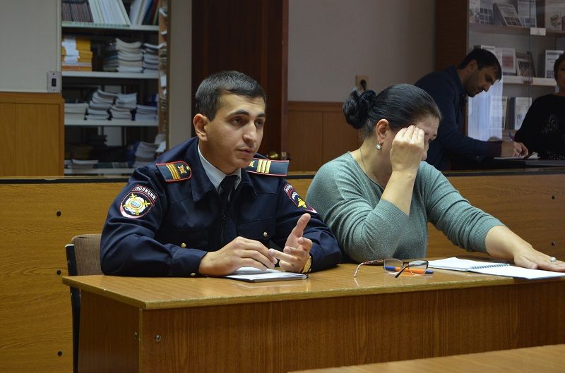 Следующий гость – это участковый Уполномоченный ОМВД России по городу Кизляру сержант полиции Саркисян Артем Рафаэльевич, который в своем обращении к студентам остановился на том, что наркоман в поисках денег на очередную дозу идет на серьезные преступления: воровство, порой даже на убийство. Распространение, хранение наркотиков в России запрещено. Это преследуется по закону. К сожалению, иногда девушки тоже распространяют наркотики, думая о том, что их не привлекут к уголовной ответственности. Они глубоко заблуждаются. Это статья, которая неминуемо ждет каждого, кто прикоснется к этому губительному веществу.